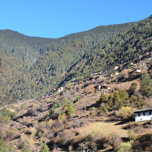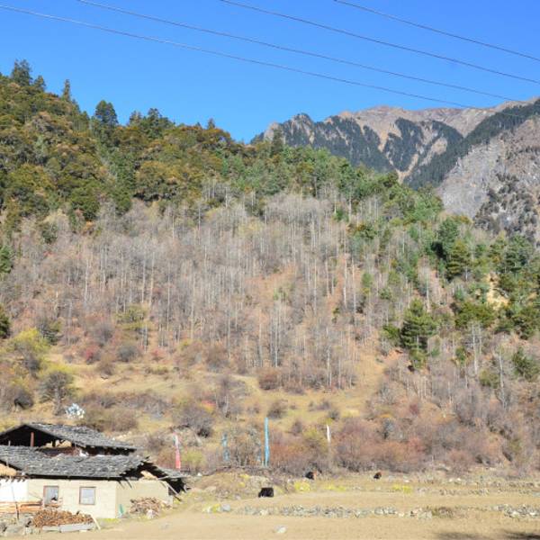 我放弃了神瀑,不代表我放弃了一上午剩余的时间。我看了看对面山坳里面的小村子,以为不去神瀑的只有我一个人,所以打算就自己过去看看~~在雨崩我们一直住在上村,而对面的下村房屋比较零落,虽然看着不远,其实要先从上村下滑一段距离,过一条小河才到对面的村庄。