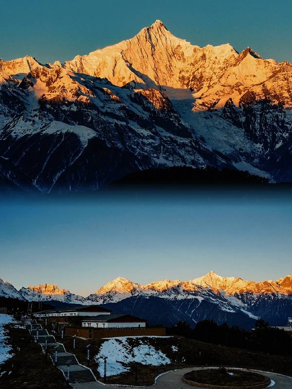 看梅里日照金山建议提前一天到达,香格里拉有直达大巴,约3.5h车程,70/人。拼车约100/人。真的很不建议凌晨出发,路面结冰易滑真的蛮危险,而且一路上弯道跟隧道也比较多,建议在飞来寺住一晚更好