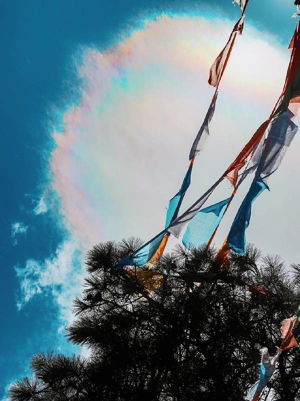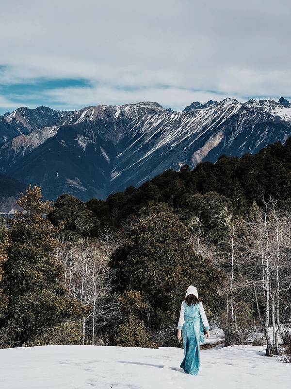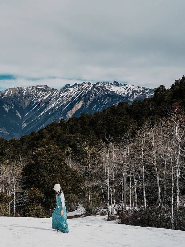 👉入口进去有两条路,一条马路,一条小路,公路这条路主要拍经幡下的卡瓦格博,小路进去不远有一片开阔的雪地,包括小路两旁都有厚厚的积雪,而且雪比较干净,太适合在雪地里肆无忌惮的玩耍了,远处就是一片雪山,这里的树也很好看,我们还看到了七彩祥云~南方孩子一整个爱住!