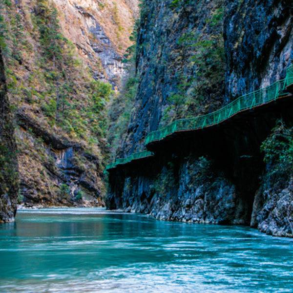 乘车至巴拉村(路程16.5公里,所需时间40分钟左右)、体验千年部落巴拉村(1个小时左右)、乘车至崖咱(20分钟左右)游香格里拉大峡谷(5公里栈道、游玩全程大概所需1小时),至栈道终点可以选择原路返回至崖咱停车场乘车至通天峡,或选择漂流返回至2号码头乘车至通天峡(悬空栈道700米,40分钟左右),乘车返回。