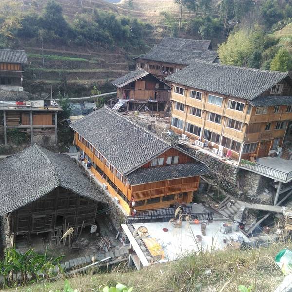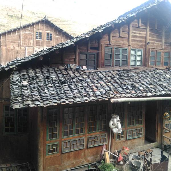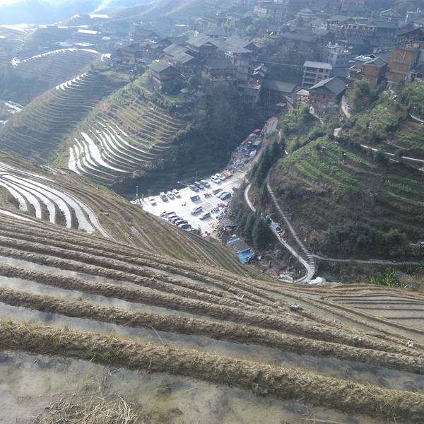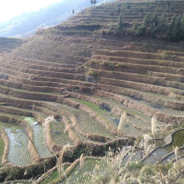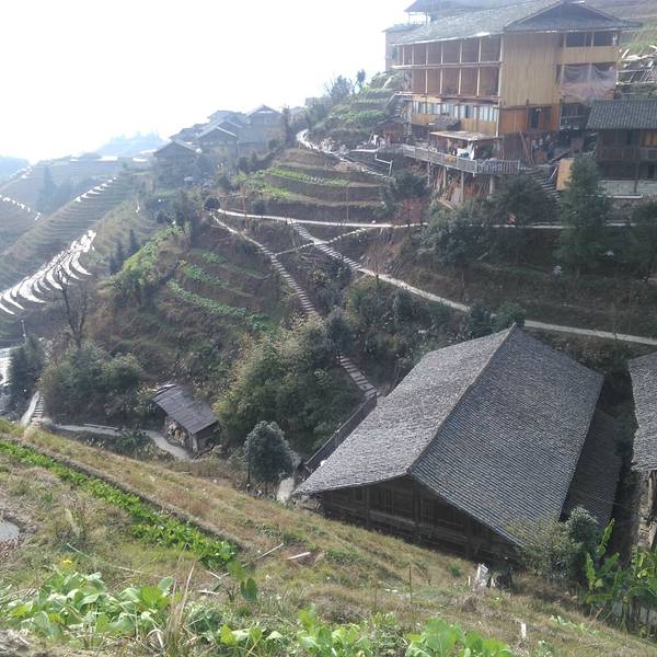 接下来,大家看我拍的平安梯田。因为季节的关系,手机功能的限制,故而照片没有实际的景色来的美。所以,当你自己真的置身于九龙五虎之顶,相信你一定会为之震撼。那份壮观,那份唯美是文字无法描绘的。即便你拥有在好的相机与相机,再好的画笔与画工也难以展现它真正的美。当然如果你用用好的设备,有好的技术,拍出来会比我的照片美。。二、平安寨的梯田不是唯一值得看的,那些藏身于梯田之中的特色建筑也是值得一看的。小贴士:
