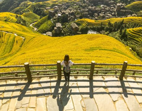 以上描述可见龙脊梯田的四季都很美,但4月看水满田畴,9月看层层铺金景色尤其绚丽壮观。