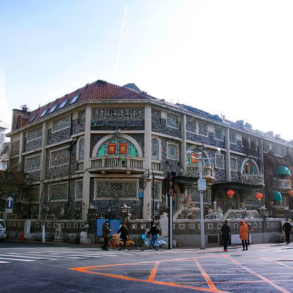 中国古城堡位于天津市和平区河北路,是五大道上的经典建筑之一,别名“疙瘩楼”,这座建筑本是1937年建造的一座意大利风格洋楼。后来经过改造,外表布满了瓷片,很有特点,因此也成为了天津的一座地标建筑。疙瘩楼的“疙瘩”是指这座建筑外面的过火砖砌的粗糙质感,有很多个小突起。在各个突起的周围,房主人用众多明清时期的瓷片把中国传统文化气息的古瓷风格融合到了建筑中,在外面观看非常特别,也适合拍照。疙瘩楼曾经是作为一座餐厅开放,如今正在整修改造成一座博物馆,博物馆的具体开放时间未知,因此目前仅能在建筑外面观看建筑外貌。