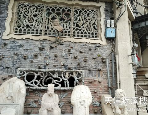 找到后有点失望,它正在修善,外墙面搭着脚手架,严重影响了它的美观,但细看它的雕塑和贴的碎瓷片还...慕名到天津五大道寻找疙瘩楼,找到后有点失望,它正在修善,外墙面搭着脚手架,严重影响了它的美观,但细看它的雕塑和贴的碎瓷片还是挺精美的。