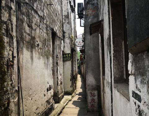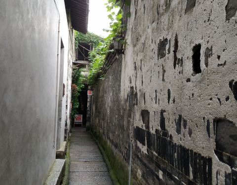 从西园出来会途经石皮弄,但是它并不是很起眼,不经意间可能就会错过了!这是两个大宅子之间的一条小弄堂,最窄处仅0.8米!弄堂里还有民宿哦!