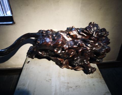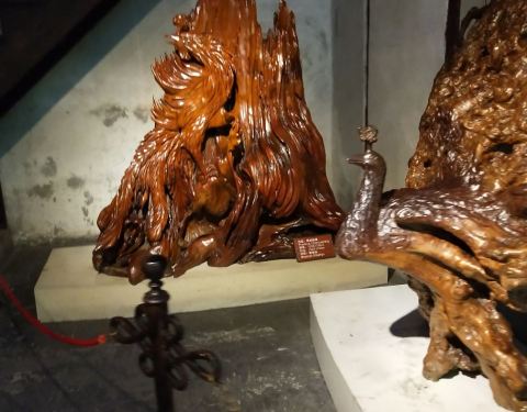 张正根雕艺术馆主要展示的根雕大家张正的作品,件件珍品,令人叹奇,最印象深刻的是进门的九龙腾飞,你真的会忍不住数一数到底有没有九条龙,太栩栩如生了。两岁的娃对于孔雀开屏的根雕,直嚷嚷,妈妈快看孔雀,看到百猴闹春时,小姑娘嘟哝着,妈妈这是猴子吧!