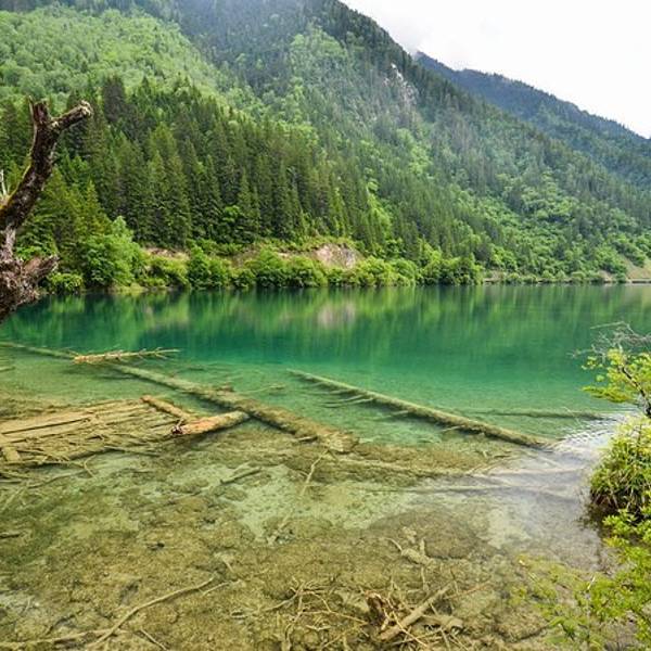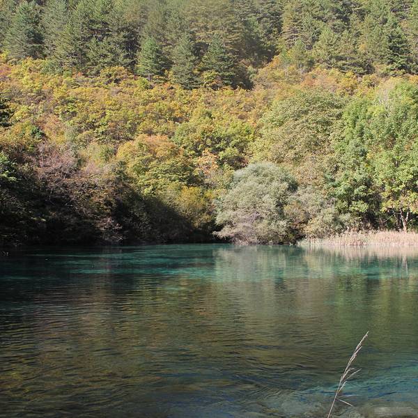 九寨的神奇,奇在水之色彩斑斓,青绿、翠绿、深绿、浅蓝、淡蓝、湛蓝、墨黛、、、犹如一颗颗镶嵌在高山沟谷间巨大的水晶,在日光的照耀下,折射出绚丽光芒!就是这么惊艳,因为这些海子可是传说中仙女梳妆的宝镜奥。这里的海子几乎没有鱼,也没有其他什么水生的小动物,只有纯粹的水,感觉就是在涤荡心灵,喝下如此纯净之水,会不会化成仙