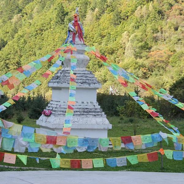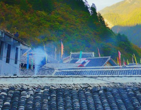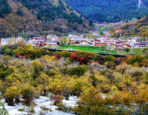 九寨沟内一处对外开放的藏民村寨,位于诺日朗服务站下方,这里的藏民是唐朝时迁移到此,所以住房式样...九寨沟内一处对外开放的藏民村寨,位于诺日朗服务站下方,这里的藏民是唐朝时迁移到此,所以住房式样是汉藏结合式,寨子高处有白色佛塔、白色经幡和转经筒墙。