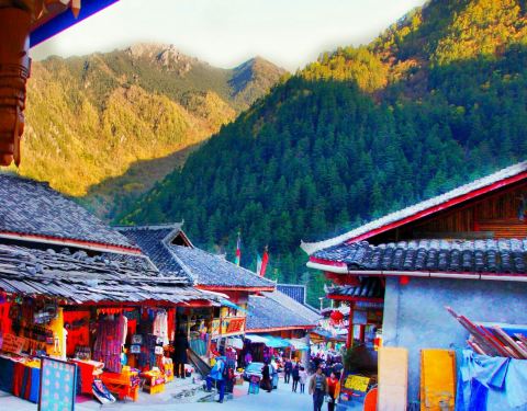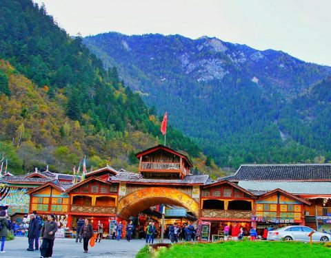 原来有藏民居住,为九个寨子离沟口最近的一个,现在已经不能住人,所有的藏民民居都用来作为商铺做生...就在沟口的位置,原来有藏民居住,为九个寨子离沟口最近的一个,现在已经不能住人,所有的藏民民居都用来作为商铺做生意了,没有啥民族风情。