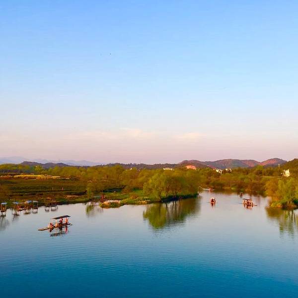 另外月亮湾上有竹排,从村庄或县道下山,都可以做竹排玩,淡季半小时50元在婺源县往李坑方向的县道上,会经过一个月亮形状的小岛,其实非常好找,因为路边停着很多车,有很多游客会在这里拍照留念,这里也是欣赏月亮湾的最佳地点,如果你的时间宽裕,可以从旁边的一条小路上山,山上有...在婺源县往李坑方向的县道上,会经过一个月亮形状的小岛,其实非常好找,因为路边停着很多车,有很多游客会在这里拍照留念,这里也是欣赏月亮湾的最佳地点,如果你的时间宽裕,可以从旁边的一条小路上山,山上有个观景台,可以看到月亮湾的全貌。月亮湾小岛的旁边,有一个小村庄,村庄前对应的月亮湾湖面,是一片绿油油的稻田,在3月稻田便是金黄色的油菜花。另外月亮湾上有竹排,从村庄或县道下山,都可以做竹排玩,淡季半小时50元。 展开