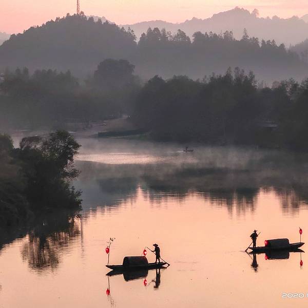 车就停放在路边。五点过已经有不少摄影爱好者在此找机位了。在观景台用相机拍照,得给管理的老乡交机位费,一个人20元。正好有摄影团也在这里拍摄。河中出现了小渔船,渔船上挂着灯,渔船在摄影团队长指挥下划动着、撒着渔网,在渐渐变红的朝霞映衬下显得格外美丽。婺源月亮湾婺源月亮湾拍摄现场婺源月亮湾婺源月亮湾婺源月亮湾婺源月亮湾婺源月亮湾婺源月亮湾婺源月亮湾 展开