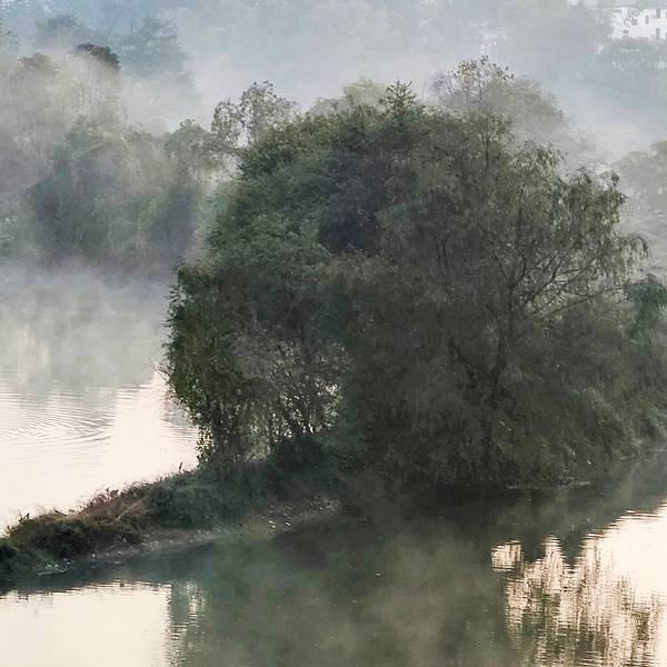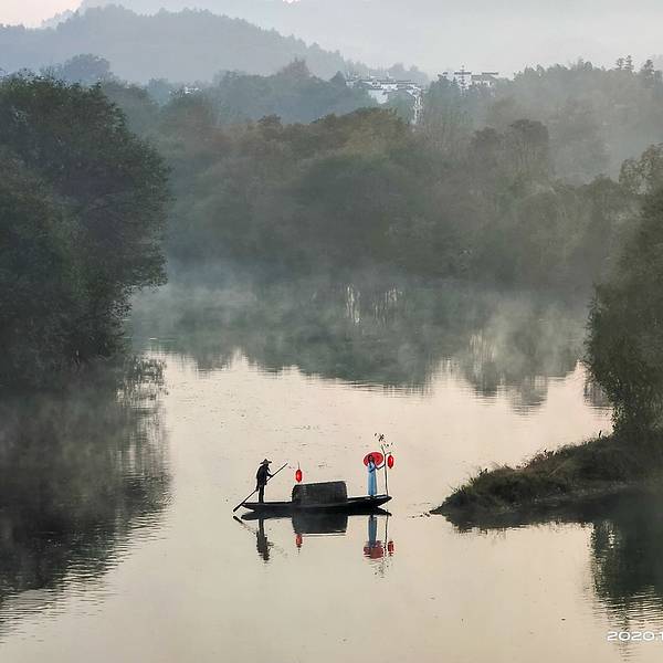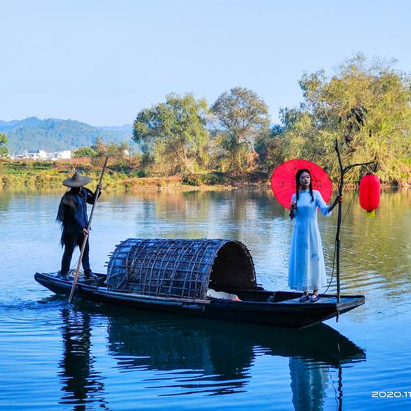 月亮湾在江湾到李坑途中,距离江湾约27公里。路边的河流中有一座狭长的小岛,小岛夹在两岸之间,形状犹如一弯月,这就是月亮湾。月亮湾因恰如月亮的形态、隔岸徽派民居的典雅、周...早晨五点过就从江湾赶到月亮湾。