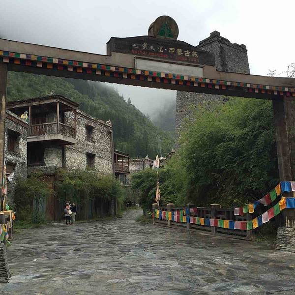 行走到还有十多公里到九寨沟口时,经过甲蕃古城,羌族的...从川主寺镇到达九寨沟口大致需2小时的车程,沿途一路风光美好,川主寺海拔较高,接近3000米,往九寨沟方向走是一路下坡,海拔又在不断下降中。。。。。。