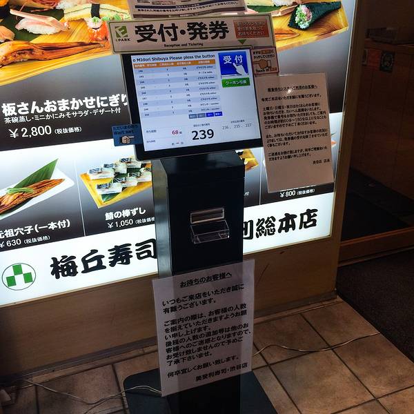 两块手表搞定,也到了该吃完饭的时候,原计划在涩谷的MARK CITY WEST大厦里的美登利寿司搞定,可是一到这里一看,这饭点,人真心不少啊...一看排号机和排队的人...我顿时决定我们打包回酒店吃吧! 二次元少女就是那么机智!╮(╯▽╰)╭