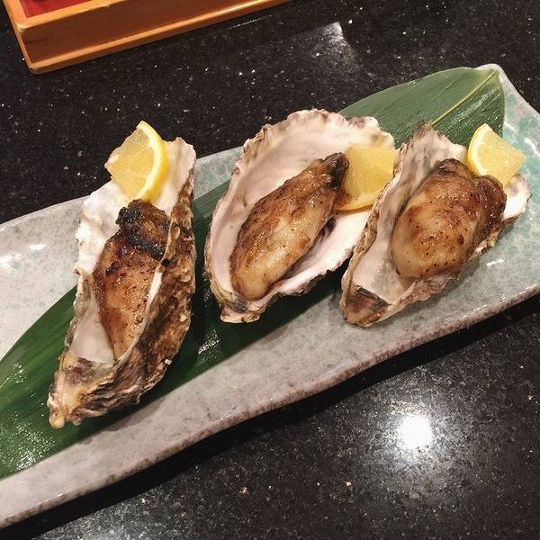 差不多7点同学就到了,我们进去吃寿司喽。我们不懂日语,对寿司也没啥研究,就交给同学啦。其实有一些套餐可以选择,但同学是单点的,真是点了不少!!!而且那个五个一排烤过的寿司可是每个人一份的哟,加上小酒...