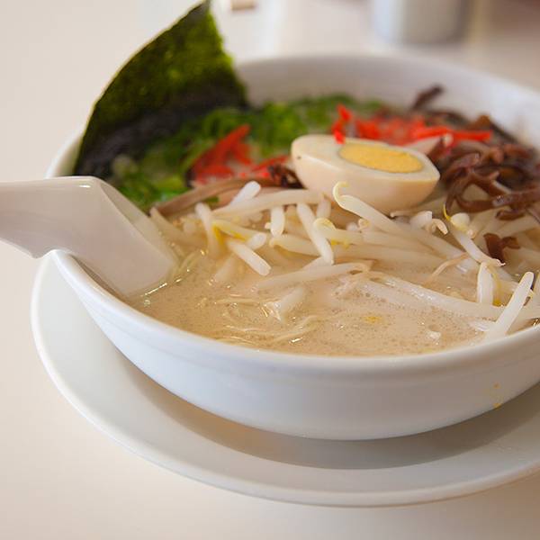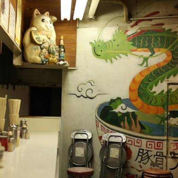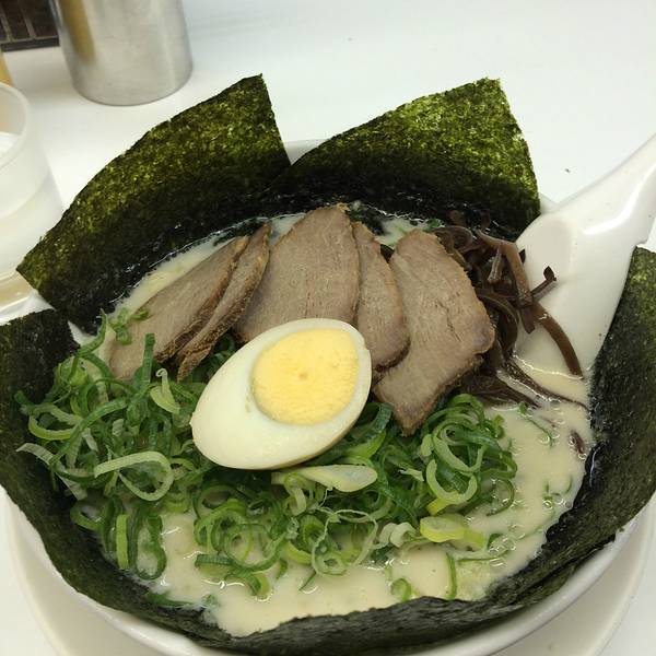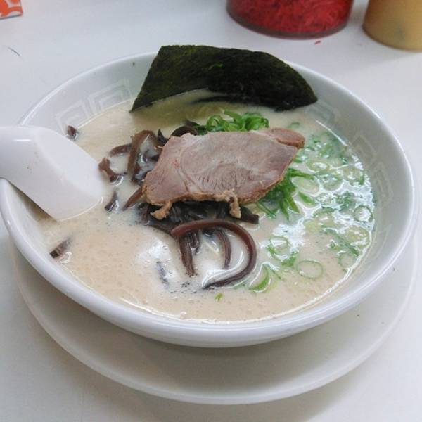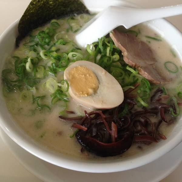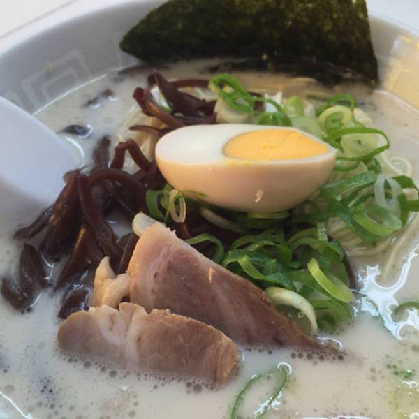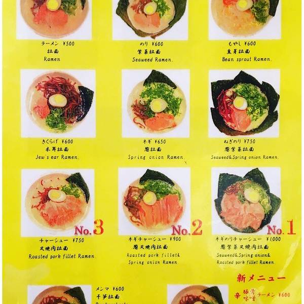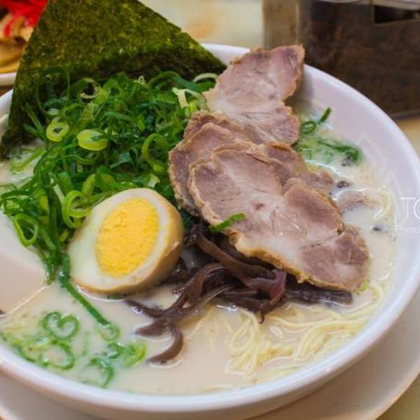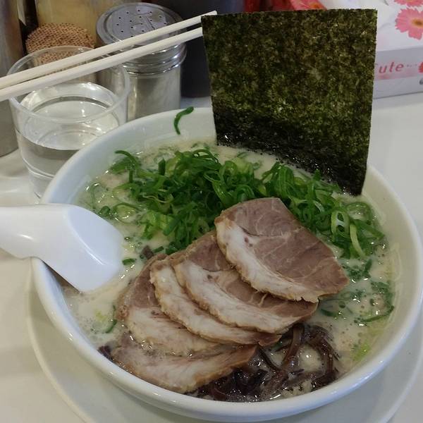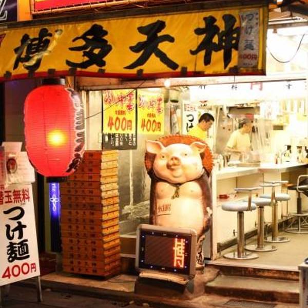博多天神是日本东京一家名气不小的拉面连锁店,主要经营九州风格的豚骨汤拉面,特色是虽然第一次提供的面量不算多,但可以免费加面,价格非常平易近人,从饭量小的女生到胃口极好的人需求都能满足。菜单包括海苔拉面、泡菜拉面、叉烧辣面、豆芽拉面、葱面等等。价格都在600到700日元之间。