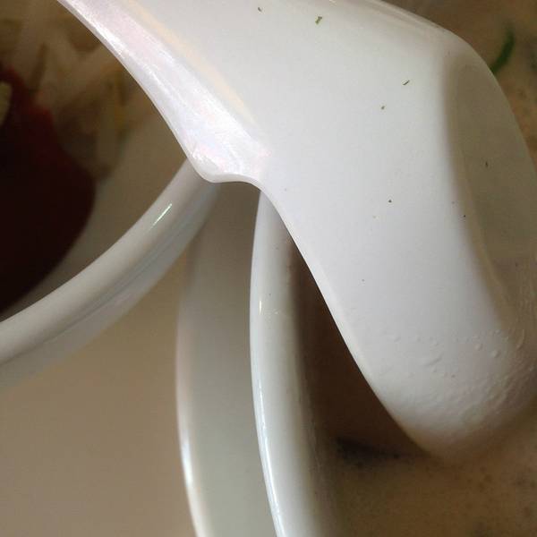 点了招牌的豚骨叉烧拉面,桌上有调料可以自由搭配。插在碗里的这片紫菜还是很讲究的,有种“摆盘”的效果,紫菜泡在汤里泡软后,吃起来有一股来自海洋的清香····当然我觉得还是汤的作用,汤头非常浓郁,一口留香,两口销魂。叉烧口感好,软硬适中,主要是肉的香味非常赞。面没有软硬度可以选,但是我觉得刚刚好,那可能就是不是很硬。我觉得博多的拉面还是很好吃的,不过老公觉得一兰更棒。