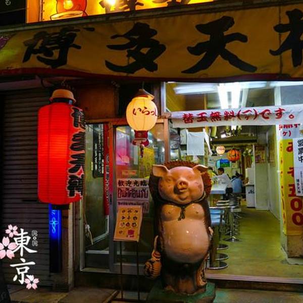 【简介】博多天神在开在东京的人气拉面,新宿这家位于歌舞伎町(风月场所)街区南门入口附近,位置不是特别好找,不过人气很旺,用导航软件不难找到,营业到晚上10点左右,所以宵夜不怕胖的亲,也可以来吃。 【环境】博多天神的Logo是个小猪,很好找,店内环境一般但是卫生满意。一碗面多在700日元上下,折合人民币就37元左右,放在国内也不是很离谱的价格,关键是真骨汤熬制,味道鲜美非勾兑,棒棒的,提示店内只收现金,不可刷卡。 【餐品】这里主打豚骨拉面,汤头都是真熬制的,肉香味很浓,不是靠味精提鲜的。一份标准碗分量就不少,配了不少海苔切片以半个蛋,需要说明一下蛋不是溏心的,口感一般,就是我扣1分的地方,口感比较干。面条劲道入味,汤头略咸但不厚,口感醇厚美味。桌边有一种红色的小配菜,那是特产的红姜,不喜欢的朋友别轻易加,姜味很浓。