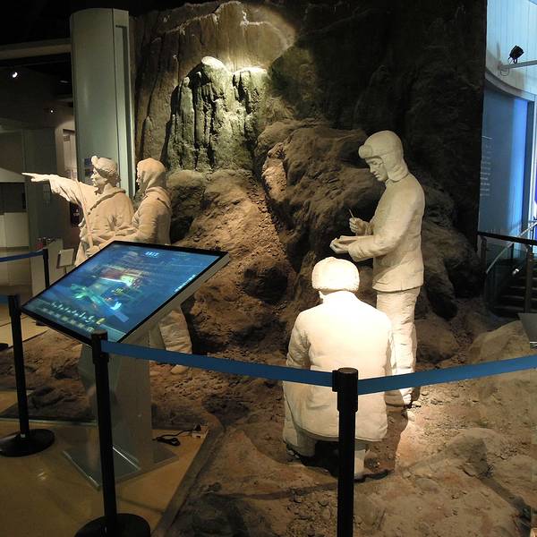 在戈壁滩上种活一颗树,艰辛程度不亚于养活一个孩子。在戈壁滩上种树非常不容易,首先要挖一个一米深的坑,将其中的鹅卵石全部刨出来,然后筛选出其中的细土,之后要从外地买来土,与筛选的细土混合后再填入坑内,改良后的土壤才能种树,所以种树的成本和代价都很高。二楼还有一区展出了众多珍贵照片、实物及复原场景,生动再现了建市初期的艰辛,描绘出光辉灿烂的明天。场景还原 展开