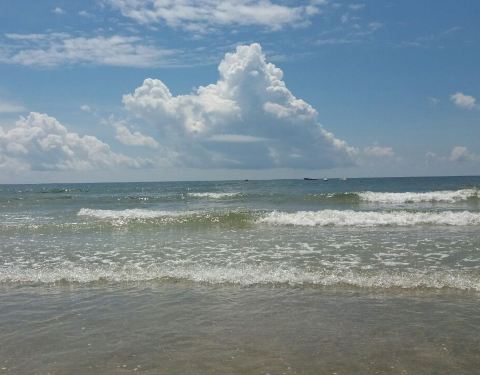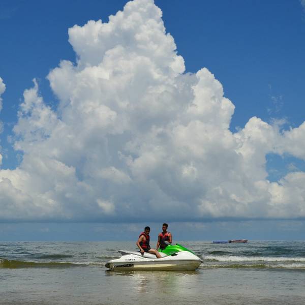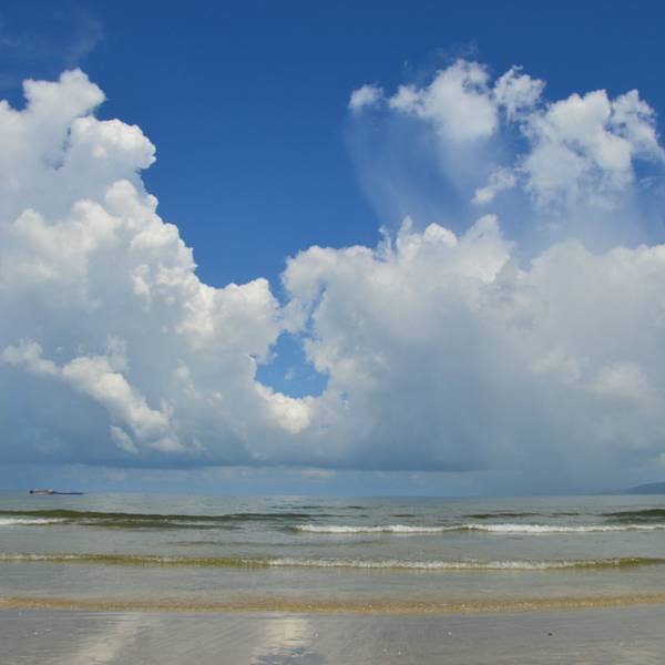 台山有个下川岛,下川岛有个飞沙滩,我第一次来到飞沙滩,呀~!一声惊叹;第二次我来到飞沙滩,还是呀~!还是一声惊叹;为什么?因为我这次看到的飞沙滩更美,因为有白云的点缀,你看大片的白云就像奶油一样,...