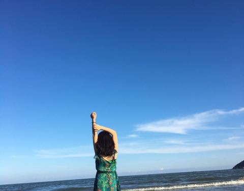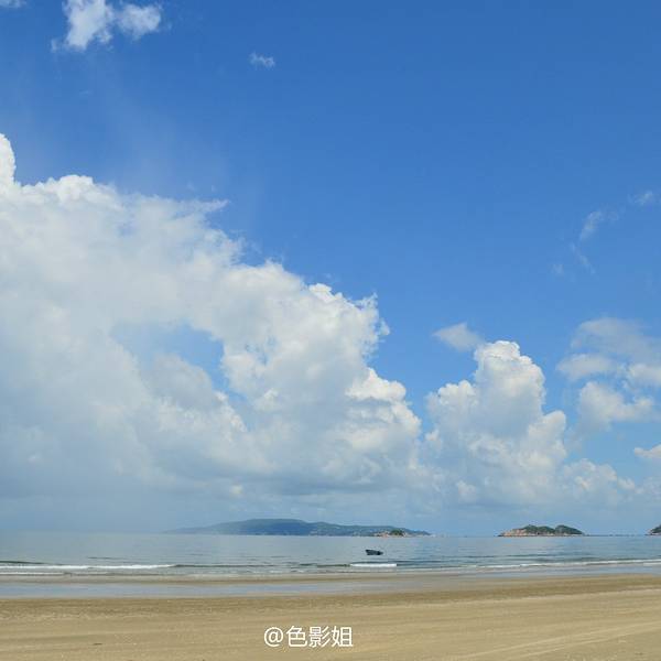 台山有个下川岛,下川岛有个飞沙滩,我第一次来到飞沙滩,呀~!一声惊叹;第二次我来到飞沙滩,还是呀~!还是一声惊叹;为什么?因为我这次看到的飞沙滩更美,因为有白云的点缀,你看大片的白云就像奶油一样,低低的浮在海面上,好想去舔一舔飞沙滩,还当真列了一个地名在这里,喜欢拍到此一游的,可以找这块石头天下很大,心要有所向往,我们都向往美好,美好是什么东西呢,此刻你看到的就是美好。我最喜欢的就是蓝天白云,百看不厌,只要他们出现,我的心情就特别high,天气热不要紧,晒黑我也不要紧,只要头顶上有这幅画,我的心里就灿烂。感谢我的幸运神,给我一个这么美丽的飞沙滩印象。路过飞沙滩旁边的一间烧烤吧,不知道它晚上是否营业,这栋小房子的风格很讨喜,所以把它收录在了我的镜头里,帆船式的招牌,白色的方形遮阳伞,还有它的屋顶上,漂了好多棉花糖。很多人喜欢写游记,然后把它分享到很多平台。然后也有很多人在投诉,这些旅行达人的图p的太漂亮了,太假了,旅行攻略也是对景点各种吹嘘夸大,自己去看到的完全不一样,感觉上了当。 这个怎么解释呢,我也是喜欢写游记,我也会看游记,照片比实景美,那是存在的,摄影是旅行达人的必备技能,专业相机拍出来的照片比手机当然会好很多倍,加上构图和角度,照片可能会比你眼睛看到的漂亮好多,还有,跟天气有关,我今天在飞沙滩看到了蓝天白云,如果你过来不凑巧碰上了下雨天,天空就是灰蒙蒙的,一点也不美。飞沙滩美在哪里呢,美在蓝蓝的天 ,美在白白的云,美在绿绿的小山包,美在潮水下退的沙滩,美在无穷无尽的海浪旅行,就是从自己住腻的地方,去别人的住腻的地方去转一转,眼睛里刷着新鲜的风景,有益身心从飞沙滩回程的时候,看到天空出了奇异的景象,两块云上被染上了颜色,第一次见到,谁可以解释一下吗?再见飞沙滩,期待下一次的约会我是一个爱听故事的人,也正在经历自己的故事,每一段旅程都是一个故事,所以我想记下来,一切美好的旅程我可以看一百遍,我的飞沙滩,我把你的美丽珍藏@色影姐,@小格调-Echo 我们一起旅行,一起记录着彼此 色影迷途,最美的时光在路上
