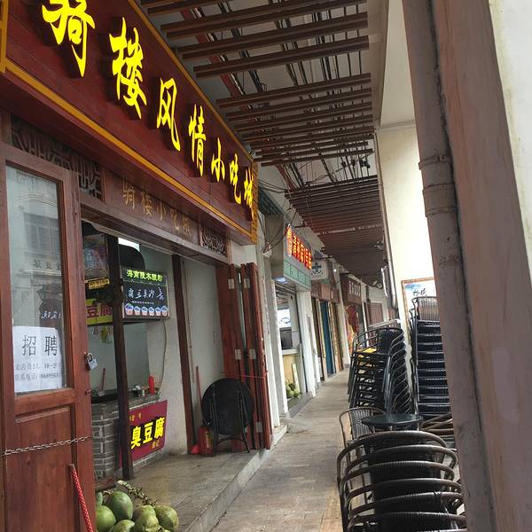 骑楼老街,顾名思义骑楼肯定是这里的一大特色。骑楼建筑最早见于古希腊,直到近代才传至东南亚,尔后慢慢传到中国沿海一带城市。骑楼在我看来是一种较为落后的建筑形式,不过在它流行的那个年代,骑楼可谓是非常科学的建筑形式了,因为它既能防晒又能躲雨。骑楼老街目前的骑楼老街更像是一个老城,两边的街道上售卖的大都是一些常用的生活用品,还有一些超市,餐厅。在骑楼出现的人,很多都像是当地人,生活气息非常的浓厚。来到骑楼老街,主要是看看这里的建筑,这边很多的骑楼都是建于十九世纪末的南阳风格柱廊式骑楼。其中的主要骑楼建筑“四牌楼”建于南宋时期,至今已有600多年的历史了。骑楼老街汽车和摩托车都可以开到骑楼老街里面,不过在骑楼老街里有一条纯步行街,所有机动车都进不去。这条街两旁分布了许多的休闲餐厅,看起来非常安静,宛如世外桃源,与骑楼老街上车来人往的喧嚣景象形成了鲜明的对比。骑楼老街骑楼建筑,楼下是人行道,既可遮阳又可挡雨,堪称是经典设计。我第一次见到骑楼是在厦门,那时候还觉得挺惊奇。骑楼老街骑楼老街在骑楼老街逛了一个来回,眼看着就到晚饭时间了,于是在网上搜骑楼老街的特色餐厅,后来看到一家做海南鸡饭的苍蝇馆子,名字叫“肥婆兰鸡饭”,兴匆匆的跑过去吃,一点也没失望,具体的见美食章节。在海南岛的第一天就这样结束,晚上回到民宿休息。 展开