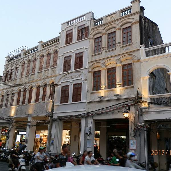 老街上多为南洋风格建筑,大多有优雅的格局和欧式装修,老街的楼层都不太高,两三层的居多。一些老楼上面还保留着从前的商号或者会馆的标志,建筑上的门窗常见精美的雕花。 展开