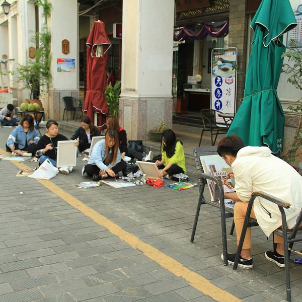 很值得逛的一个地方,个人觉得在老书店楼上二楼露台是最佳观景店,看着楼下吵吵闹闹的喧哗,楼上是很安静的。视角很适合捕捉一些人像: 有游览拍照的游客,有当地人,慢悠悠逛着的爷爷奶奶,带着孩子的年轻妈妈,骑着电动车来来去去匆忙的人群…