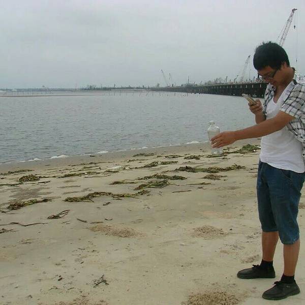我们走过桥真是太对了的!这时候拍照都没了兴趣!有很多的海鸟飞舞这是小邹丢的漂流瓶!小邹开始还不乐意丢,我说写早点找到女朋友啊,这样他才动了心思!在这里也祝小邹心想事成!!加油!海滩上,满是这样的情景,这整个就是小螃蟹的天下!密集症者慎入!我们在桥对面的时候,...这是小邹丢的漂流瓶!小邹开始还不乐意丢,我说写早点找到女朋友啊,这样他才动了心思!在这里也祝小邹心想事成!!加油!海滩上,满是这样的情景,这整个就是小螃蟹的天下!密集症者慎入!我们在桥对面的时候,就看见这片的沙地特别的白,确也是特别的细软!很舒服!