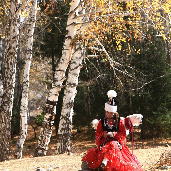 图瓦族的小姑娘,盛装和游人拍照,正坐在石头上点着钱在禾木住上一晚,第二天一早可以去点将台,那是禾木村的一处自然形成的高山草甸,相传成吉思汗曾经再次检阅十万雄师,爬到上面可以俯瞰整个禾木村,背后便是雪山,摄影最佳地点。