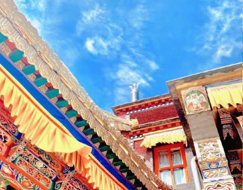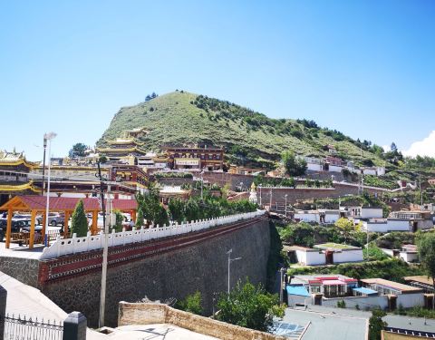 夏琼寺东北、东南面是一个村落,居住着藏族和其他民族的村民,纯朴的民居和金碧辉煌的寺院建筑散落在巨大的山体上,融入在大自然中,韵味十足。