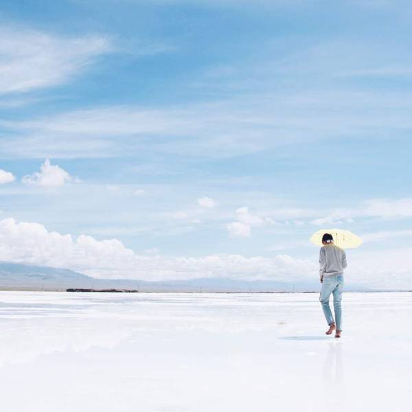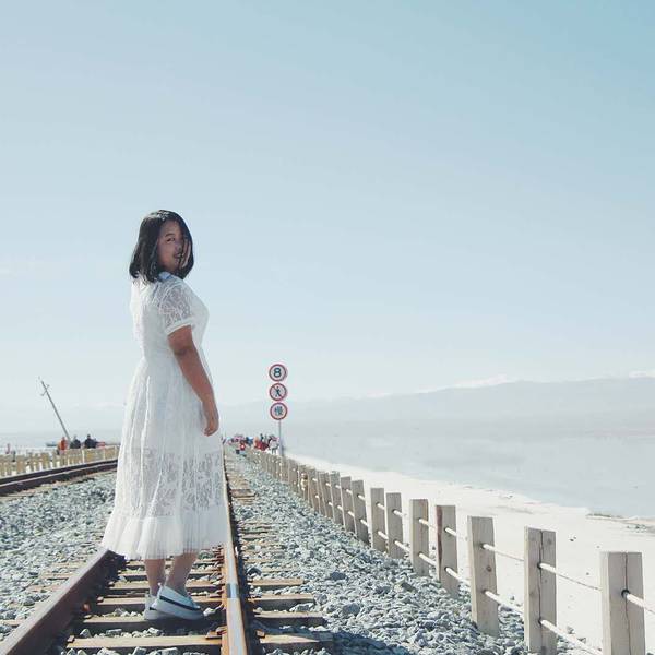 ▼ ▼ ▼说实话,茶卡是那种拍照好看,但是真正看起来非常一般的景点。而且去茶卡的天气非常重要,一定是那种蓝天白云的天气看起来才美,不然真的会失望。在茶卡除了非常常见的红色裙子。其实白色的纱质裙子也是很出片的呀~道具很重要~哈哈气球再次排上用场。茶卡有火车可以做,50块一个人,可以做着小火车走到盐湖里面的位置。不过旺季的时候,等火车的人特别的多。我觉得倒不如自己慢慢走进去。七八月份的时候其实茶卡的水位是比较高的,很难看到天空之境的效果。后面会到的大柴旦翡翠湖才真正是天空之境的样子。第三站:荒漠戈壁