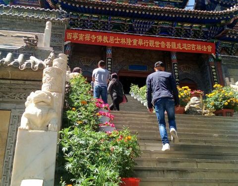 建在西宁南山公园旁,依山而建,远看非常巍峨,实际寺院不大,天王殿里四大天王都是墙上的浮雕(地方太小,放不下塑像),寺里都是老年居士,内看到和尚。