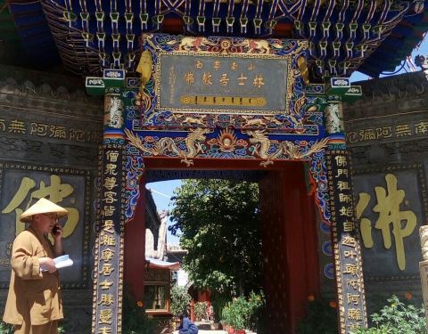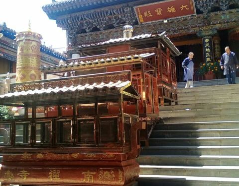 感觉寺院的建筑挺精美的,大雄宝殿前还有高大的转经筒,寺院不收门票,门口有许多抽签算命的人南禅寺又叫南山寺,爬上长长的台阶进入寺院。感觉寺院的建筑挺精美的,大雄宝殿前还有高大的转经筒,寺院不收门票,门口有许多抽签算命的人。游客很少,非常清静。