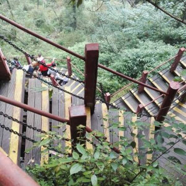 昨天我们做了约50分钟的车程,我们终于抵达了目的地——凌云山风景区。放眼望去,一座巍峨壮丽的高山屹立在蒙蒙细雨之中山上的景物,飘渺无师,无若隐若现。仿佛仙境,给人一种“山色空蒙雨亦奇的美感”。 我们乘坐观光车来到了玻璃栈道景观平台。从下向上望去,那玻璃栈道形成了一个大大的A字。我想:可以站在上面浮望大地是一种什么的感觉呢?我不由得兴奋的起来,三步并作两步,一口气爬上了楼梯,直充平台顶峰。放眼望去、太美丽了