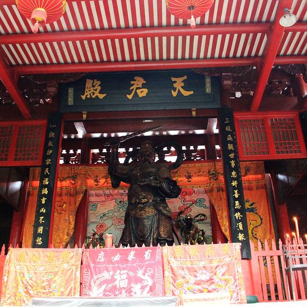 在于山之巅,又名天君殿,为道教庙宇,主祀道教护法神王天君和在此修道升仙的何氏九兄弟,山不在高,有仙则名,于山因有此观而蕴灵气,观中有天君殿、九仙殿、三清殿、玉皇阁、斗姆殿等的殿堂,古朴清幽。