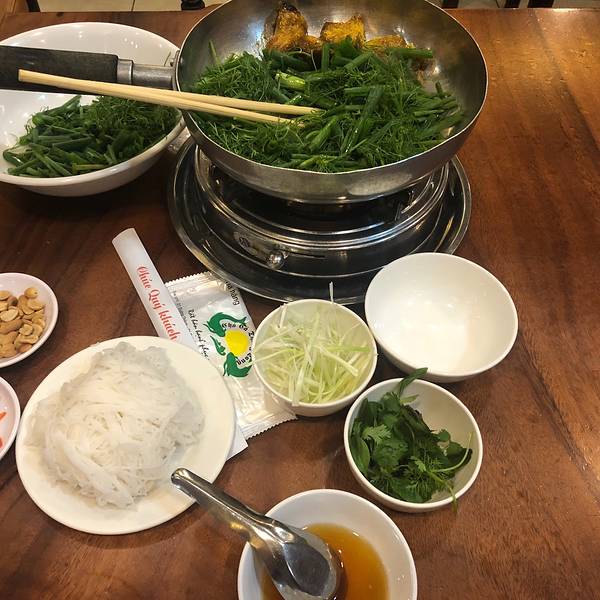 属于越南有特色的饭店,里面的古法煎鱼很好吃,一个煎鱼套餐东西很多,还有脆饼,结束以后还送布丁,很实惠的一家小店,不过鱼肉少了点。