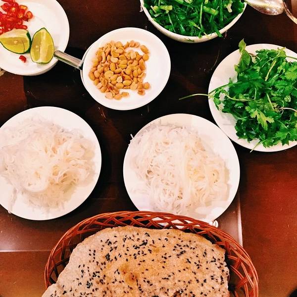 Cha Ca La Vong是一间越式古法煎鱼餐厅,餐厅只有一道菜,就是古法煎鱼,简单的小煎锅,搭配蔬菜煎出来的无刺鱼肉,外表香脆,内里嫩滑,吃的时候配上香草、花生、细粉和酱汁等配料,味道超赞。 烤鱼有很多配菜,青柠辣椒这些必备的不说,还有米粉和炸脆饼,当然,香菜、葱这些更是少不了。还有一碗蘸酱,用虾酱为主要调料调出来的。
