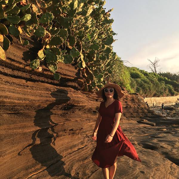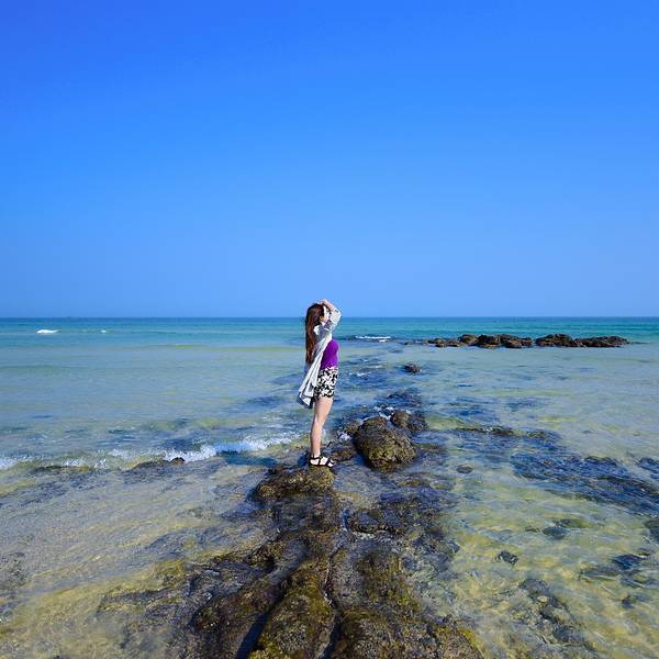 也有一些岛民在这里摆摊租一些小凳子,也可以带个小袋子捡捡贝壳、小鱼、小蟹什么的,非常适合与情人或家人周末周末度假。这里平常也会有岛民在附近摆摊烧烤,可以在这里尝尝烧烤,这里的海鲜烧烤很便宜,味道也很好,印象深刻,非常喜欢。礁石很滑,尤其是傍晚浸渍在水里的礁石平台,上面有青苔和贝壳海螺很刺脚,必须小心谨慎,注意安全。喜欢拍照的美女记得带条白色或红色的裙子哈,在海边随风飘动的景象,想想都很美的哈!当然,防晒是必须的!实用贴士: