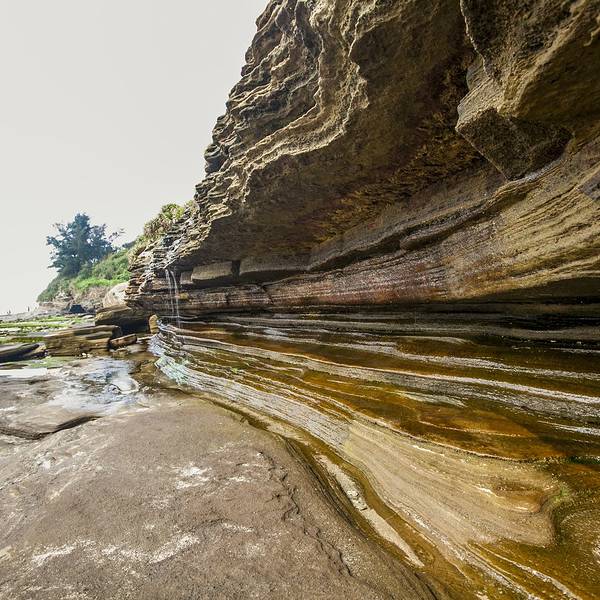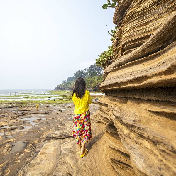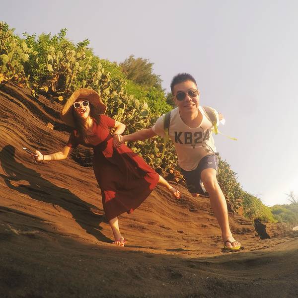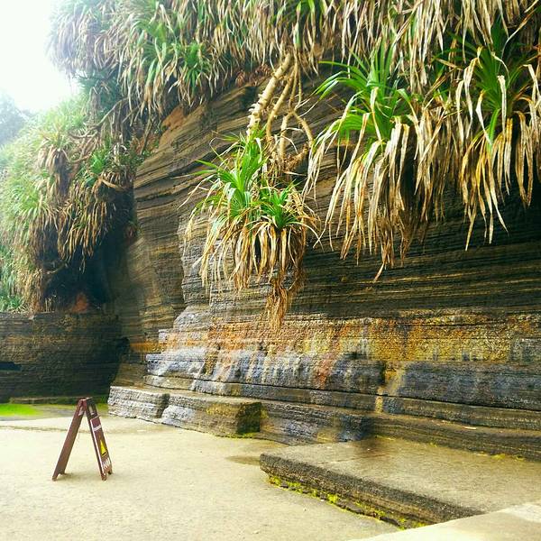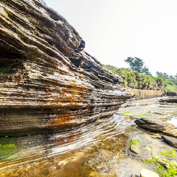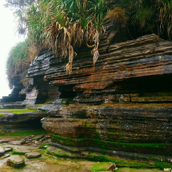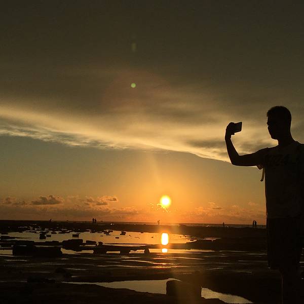 PS:这里献上拍摄火山岩美照的小TIP,下图,找一个前面有一滩水的地方,这里画面会更有层次,而且景色倒映,颜色会特别丰富,手机也能拍出大片,没有带三脚架的我,只好用自拍杆充当了,因为除力牌照还录了延迟摄影,在短短十秒钟呈现了十几分钟的日出壮美画面,大家可以到我的去哪儿空间的游记看。而且下午的十分来,退潮时的五彩滩,可以见到一层又一层的海蚀沟,在阳光的照耀下,十分漂亮。