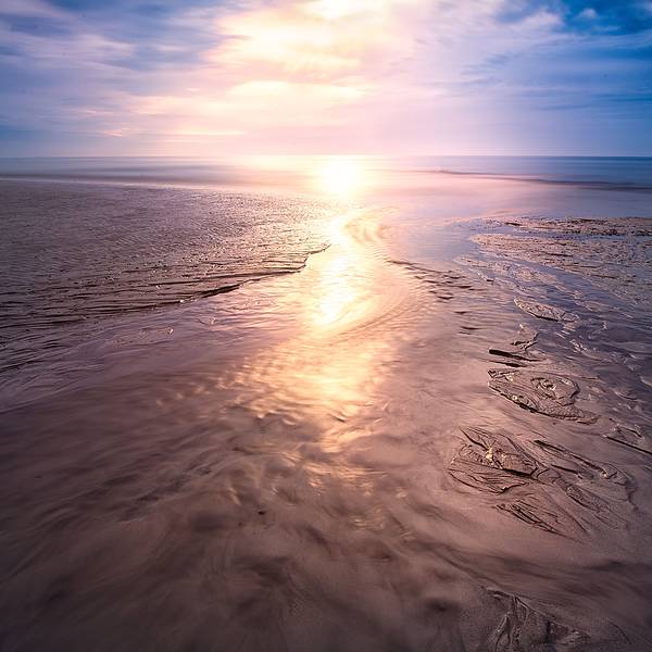 每个水坑里都照应着天空的碧蓝日出渔家准备出海打鱼