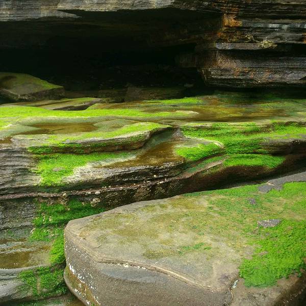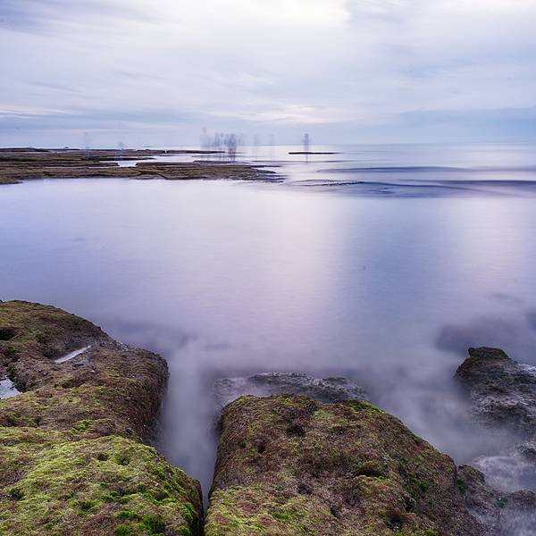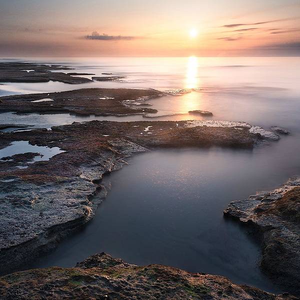从破晓,到微亮,到鸭蛋黄般的日出五彩滩布满青苔的海蚀平台,