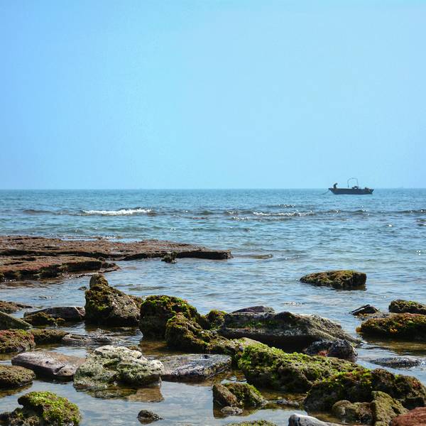 五彩滩在静宁里祥和美丽渔家出发后五彩滩的海面