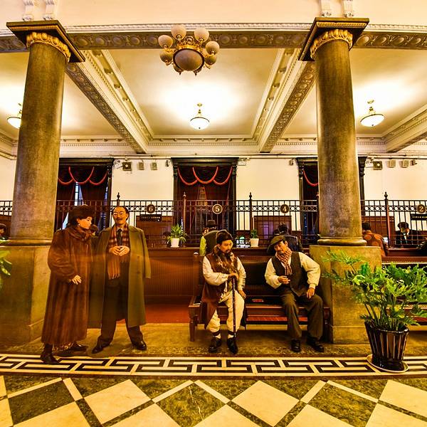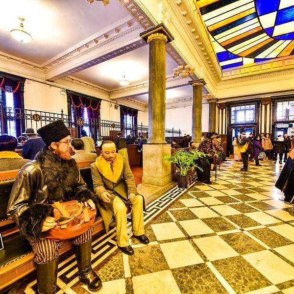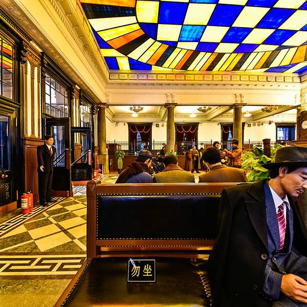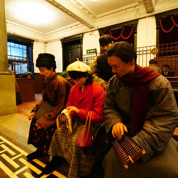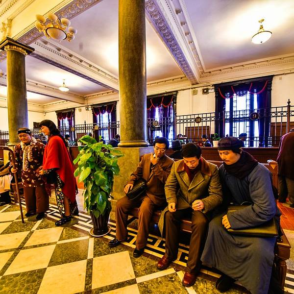 进入大厅第一眼会惊讶了起来。整个厅内都是人山人海的银行、贸易与交易人员在这里非常繁忙的活动着。然而,这些人物都是用蜡像制作而成的,加上逼真的肤色和民国时期的服装,真的以为自己从梦中进入这里了或是跨越了时空来到了这里。真的很神奇,漫步于整个大厅的每个角落、每个柜台还是每层楼,都会感受到自己也在那个时候了,在这里真实的感受到北洋军阀时期张氏父子的边业银行的繁荣,更能如实的体会到边业银行在当时为整个社会经济发展、城市建设以及海外贸易起到了不可估量的作用。此时,山野君能够感受到当年边业银行为沈阳成为东北第一都市起到了关键性作用,同时金融贸易促进了实体经济的大发展,为沈阳成为东北三省最大的重工业与军工工业基地作出非常大的贡献。