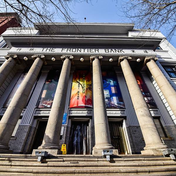 这座昔日名为边业银行是按照欧式建筑设计风格来建造而成的,在那个时期属于跨国交易类型的私有银行了。门前的几根粗壮耸立的石柱子第一时间给人一种国家大型银行的气场,颇具大国国有银行的风范,与此同时可以得知当时张作霖与张学良父子在军政事业生涯里发展到顶峰时期而产生了强大的金融与贸易的发展趋势。