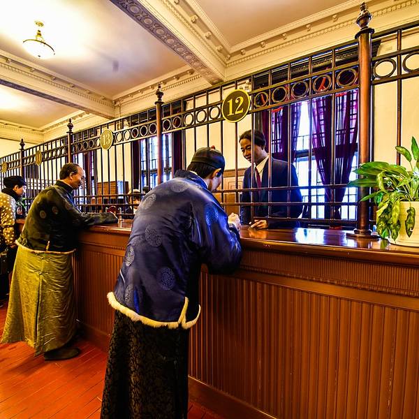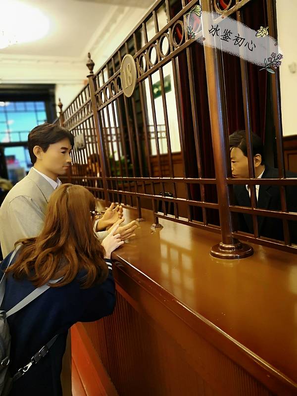 一进门的时候,愣了一下,以为这怎么怎么热闹,还扮演上了,一大厅都是人,这些蜡像形象地演绎了当时的工作办事状态。请问这是要办理什么业务?办理业务: