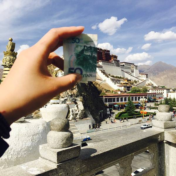 ...达拉宫一侧缓慢升起,照遍大地,听说早上8点不到,小小的观景台就会摆满了三脚架,想拍日出要赶早哦药王山是座不高的山,爬到观景台没多少台阶,但是也把我喘的气呼呼。到了这里才知道,现在流通的50元纸币取景就是布宫,正在想怎么弄来50元,小伙伴掏出了一张纸币,简直有备而来啊。