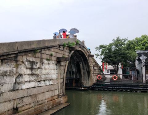 卧龙桥 始建于1719年 全长31.46米 单孔石孔桥 西塘最不缺少的就是桥了 这一座卧龙桥,连接的是北栅街和椿作埭,也算是景区的2个入口处了,这里要是放在过去,绝对算是交通要塞。 坐标:北栅街的开端 这座桥算是我这里见过的比较高的石桥了 从下面走上来可以走好久啊 站在高处拍下面的风景也是极好的 就是有点高,这样的话,恐高症的还会有点点害怕怕 隔壁就是西塘三大游船码头之一了,卧龙桥游船码头,这里是游船的开始,还不错。