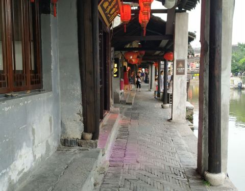 卧龙桥游船码头 西塘古镇景区内有好几个游船码头,这里一个是在卧龙桥边的,可以沿着这条走廊先到桥上看一下风景,拍拍照片,然后再去码头上坐游船,这里的游船按人算的,需要等齐了人数才开船,也可以包船,这样...
