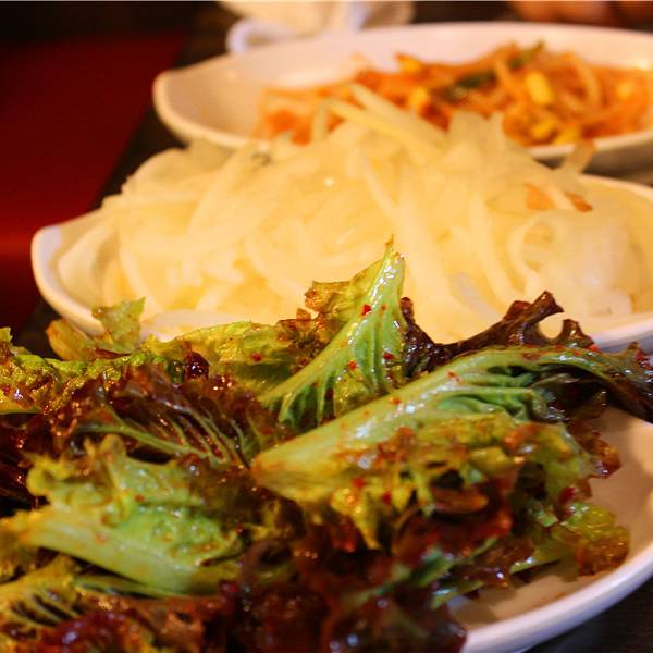 家餐厅特色菜是烤烤猪护胸肉,猪肉鲜嫩且腌制入味,将烤好的肉卷上生菜,配上泡菜和萝卜咸菜在一起很好吃。来首尔非常值得一去。
